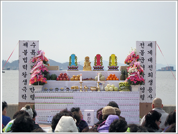 ¡Û ÀÏ ½Ã : 2011³â 3¿ù 22ÀÏ¡Û Àå ¼Ò : ÁøÇØ·ç ±Ý³â Á÷ÇÒ±³±¸¿¡¼´Â ÀüÀïÀ¸·Î »ç¸ÁÇÑ ±º°æµé°ú ÀϺ» ´ëÁöÁøÀ¸·Î ¸ñ¼ûÀ» ÀÒÀº Èñ»ýÀÚ, ±¸Á¦¿ªÀ¸·Î Àΰ£À» ´ë½ÅÇØ Á×Àº °¡ÃàµéÀÇ ¿µÈ¥À» À§·ÎÇÏ´Â ¹ýȸ¡¤¼ö·ú´ëÀ縦 ºÀÇàÇß´Ù.